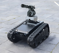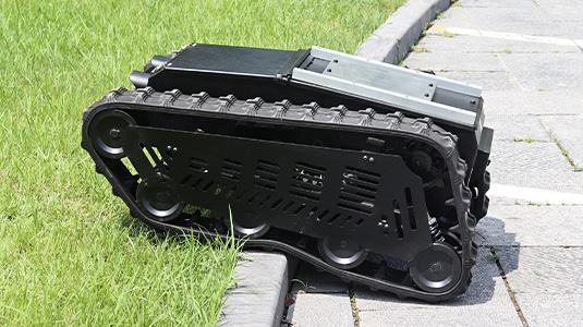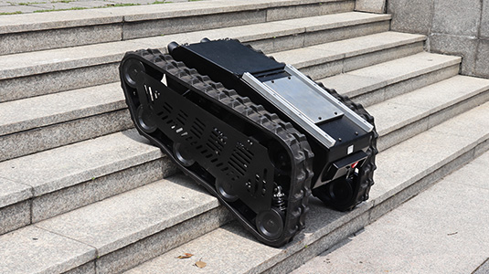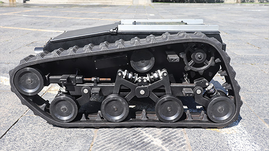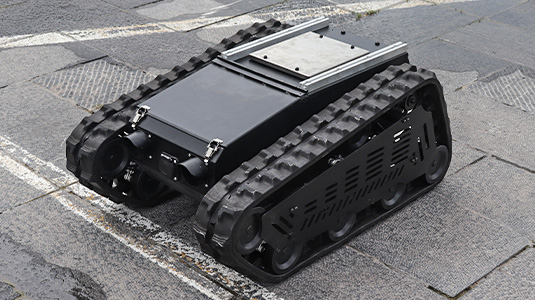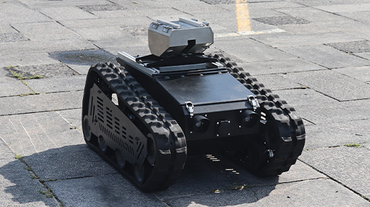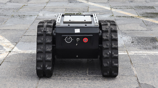 1. Structural performance: The overall track structure of the chassis is designed in a diamond shape, with 150mm high ground clearance, strong crossing ability, long track grounding area, excellent stair climbing ability, and strong outdoor off-road ability. Both the front and rear tracks can wrap the vehicle body, which is more conducive to protecting the vehicle from damage and allowing it to walk on various terrains. 2. Protection level: IP65. 3. Communication protocol: 485 communication, CAN protocol. 4. Working mode: DC brushless Hall motor or servo motor drive+encoder, closed-loop control system, precise control. Precise control of steering angle, speed, and stroke. It can rotate in place or spiral as needed. 5. Driver: overvoltage, overcurrent, undervoltage, overheating, short circuit protection. 6. Control methods: joystick control, standard aircraft model remote control, and upper computer command control. Speed loop+displacement loop+differential loop, precise speed regulation. 7. Rubber tracks: good ground adhesion, long track grounding area. 8. Tensioning wheel: adjustable to ensure normal tensioning and operation of the track. 9. Widely applied in fields such as safety protection monitoring, explosive disposal robotic arm carriers, installation of robotic arms, cameras, lifting platforms, etc. 10. Lithium iron phosphate battery: It has the advantages of high working voltage, high energy density, long cycle life, good safety performance, low self discharge rate, and no memory effect. 11. Shock absorption system: Matilda suspension combined with Christie shock absorption, providing excellent shock absorption system. 12. Switching control of high and low beams allows for night driving operations. 13. Support customization and secondary development. 14. Optional powerful dual degree of freedom Pan/Tilt, horizontal direction: torque 100NM, speed 180 °/s, vertical direction: torque 100NM, speed 180 °/s or torque 50NM, speed 360 °/s.