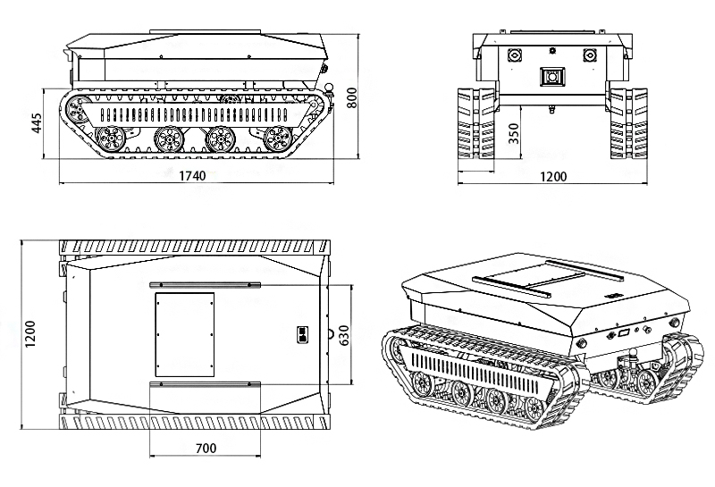 1. High Off-Road Capability: The chassis ground clearance reaches up to 350mm (Max. 450mm customizable), adapting to various terrains and road surfaces.2. The profiled steel frame and sheet metal skin structure ensures the rigidity and strength of the machine and the airtightness of the machine body.