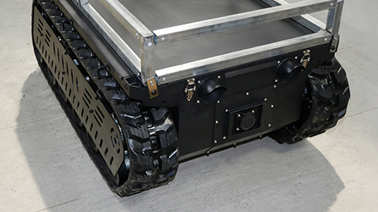 1.Structural performance: 1) The overall track structure of the chassis is designed in a parallelogram shape, with high ground clearance, strong crossing ability, long track grounding area, excellent stair climbing ability, and strong outdoor off-road ability. Both the front and rear tracks can wrap the vehicle body, which is more conducive to protecting the vehicle from damage and allowing it to walk on various terrains. 2) Top 1150 * 750mm large flat plate, can be equipped with guardrails and used as a transportation vehicle. 2. Protection level: IP65. 3. Communication protocol: Modbus485/CANopen/ROS2. 4. Working mode: DC brushless Hall motor or servo motor drive+encoder, closed-loop control system, precise control. Precise control of steering angle, speed, and stroke. It can rotate in plTop 1150 * 750mm large flat plate, can be equipped with guardrails and used as a transportation vehicle. Both the front and rear cover plate can be pulled out, facilitating maintenance.ace or spiral as needed. 5. Driver: overvoltage, overcurrent, undervoltage, overheating, short circuit protection. 6. Control methods: joystick control, standard aircraft model remote control, and upper computer command control. Speed loop+displacement loop+differential loop, precise speed regulation. 7. Rubber tracks: good ground adhesion, long track grounding area. 8. Tensioning wheel: adjustable to ensure normal tensioning and operation of the track. 9. Use Parallel shaft gear reducer instead of worm gear reducer: 95% high transmission efficiency, high transmission accuracy, high torque density and load capacity, longevity and low wear rate, excellent heat dissipation performance, low operating noise. 10. Widely applied in fields such as safety protection monitoring, robotic arm carriers, lifting platforms, transportation vehicle, etc. 11. Lithium iron phosphate battery: It has the advantages of high working voltage, high energy density, long cycle life, good safety performance, low self discharge rate, and no memory effect. 12. Shock absorption system: Christie and Matilda suspension combined with Christie shock absorption, providing excellent shock absorption system. 13. Switching control of high and low beams allows for night driving operations. 14. Support customization and secondary development. 15. Speed: Maximum 20km/h high speed customizable; With standard internal contracting brake; Optional High, medium and low three-speed precise control on remote controller for speed ≥10km/h.