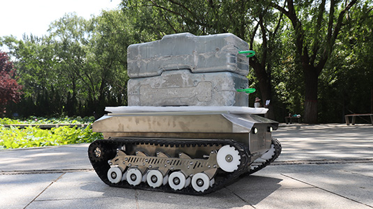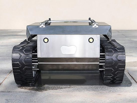 Features: 1. (1) The chassis is made of stainless steel material, which has good anti-corrosion and waterproof functions, strong crossing ability, long track grounding area, and strong outdoor off-road ability. The tracks can wrap the vehicle body in front and behind, which is more conducive to protecting the vehicle from damage and can walk on various terrains. (2) 500 * 350mm large tablet design, can be equipped with guide rails for easy installation of other components. 2. Protection level: IP65. 3. Communication protocol: Modbus485/CAN/ROS. 4. Working modes: servo motor drive + encoder, closed-loop control system, accurate control. Precise control of Angle, speed and stroke. The movement trajectory is arbitrary, can rotate in situ, can also spiral motion. 5. Driver: over voltage, over current, under voltage, overheating, short circuit protection. 6. Control modes: joystick control, standard aircraft model remote control, and upper computer command control. Speed loop+displacement loop+differential loop, precise speed regulation. 7. Guide wheel: can be tensioned and adjusted to ensure the normal tension and operation of the track. 8. Suspension system: multi-level Christie damping structure, up and down damping, center of gravity damping. 9. The chassis is equipped with headlamps, which can be used for night driving operations. 10. Support customization and secondary development.